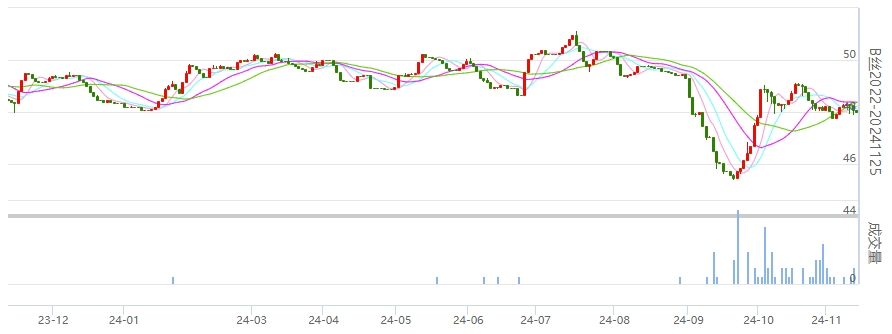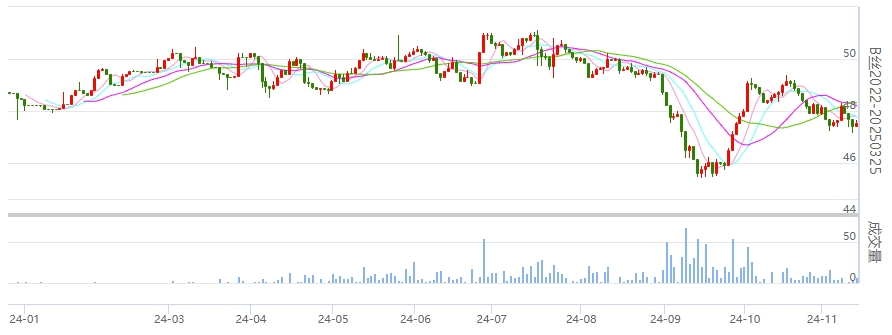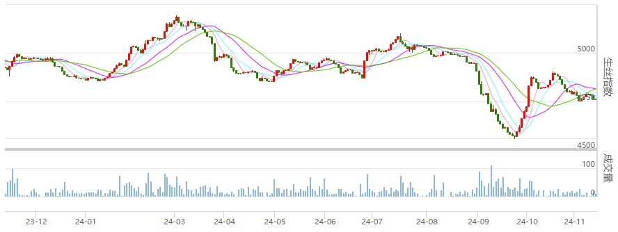 今日(2024年11月14日,周四)中國(guó)繭絲綢交易市場(chǎng)生絲電子指數(shù)微跌0.09%收于4758.42點(diǎn)。B絲2022D(商檢4A級(jí)生絲):241125合約下跌0.06萬(wàn)元報(bào)收于48.00萬(wàn)元;250325合約上漲0.12萬(wàn)元報(bào)收于47.55萬(wàn)元;250925合約上漲0.03萬(wàn)元報(bào)收于46.92萬(wàn)元。