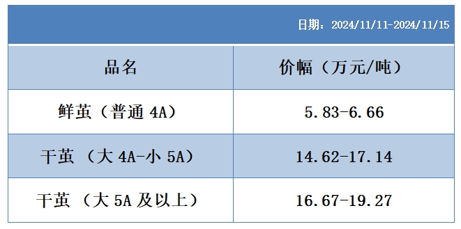 根據(jù)本周蠶繭報價按照指數(shù)方案形成的基準(zhǔn)品價格區(qū)間