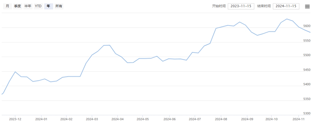 而高等級生絲價格指數(shù)上,繼續(xù)按照銷售節(jié)奏走貨,價格整體也呈現(xiàn)持強(qiáng)波動格局,但銷售難度有所加大,成交時間拉長。本周高品質(zhì)生絲指數(shù)略下跌0.15%報收于5583.45點(diǎn)。