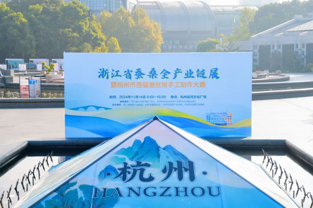 一顆顆蠶繭背后,是一條栽桑、養(yǎng)蠶、繅絲、織綢的產(chǎn)業(yè)鏈,更是穿越數(shù)千年時光積淀下來的文化與傳承?,F(xiàn)場的浙江省蠶桑全產(chǎn)業(yè)鏈展,給出了很好的詮釋。廣場上的兩塊巨幅展板,分為“傳承經(jīng)典”和“融合未來”,記錄浙江蠶桑業(yè)的起源,展示浙江致力于高水平保護和傳承蠶桑產(chǎn)業(yè)、推動產(chǎn)業(yè)轉(zhuǎn)型升級的生動實踐,以及浙江蠶桑業(yè)發(fā)展史上的重要節(jié)點和經(jīng)典成果。