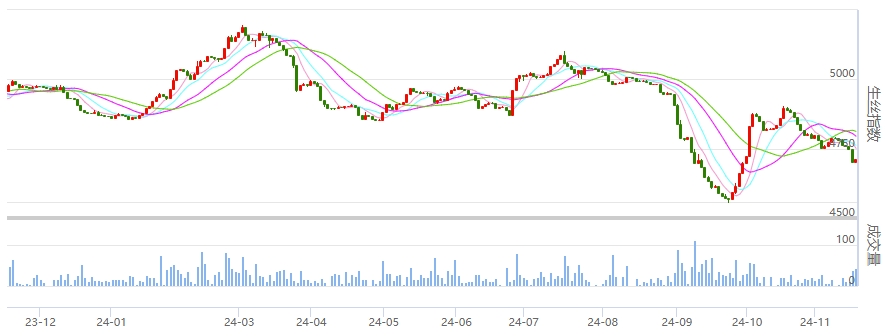 20/22D商檢4A級(jí)生絲:今日(周二)生絲盤面各遠(yuǎn)近合約價(jià)格價(jià)格漲跌不一,主力合約下午多收紅。241125生絲合約即將交收,今日減倉收紅。250925合約今日也換手積極。整體上,全場(chǎng)成交較昨日活躍。