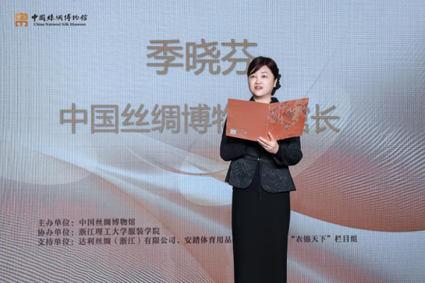 開幕式上,領(lǐng)導(dǎo)嘉賓觀看了今年10月在法國(guó)國(guó)立吉美亞洲藝術(shù)博物館舉辦的2024“絲綢之路周”收官活動(dòng)的回顧視頻,這也是國(guó)絲第一次以“絲路文物活化設(shè)計(jì)”為主題,走進(jìn)浪漫之都巴黎。中國(guó)絲綢博物館季曉芬館長(zhǎng)團(tuán)隊(duì)攜手浙江理工大學(xué)團(tuán)隊(duì)、法國(guó)設(shè)計(jì)師、安踏設(shè)計(jì)團(tuán)隊(duì),共創(chuàng)了以館藏唐代翼馬紋錦和立獅寶花紋錦為靈感源的60多套鞋服,并采用中國(guó)蠶桑絲織技藝和現(xiàn)代科技完成作品制作。季館長(zhǎng)認(rèn)為絲綢是傳統(tǒng)的,更是時(shí)尚的,絲綢與時(shí)尚有著共通的內(nèi)核,那就是生活的美與藝術(shù)。時(shí)尚是一種面向未來(lái)的藝術(shù),時(shí)尚是一種朝氣蓬勃的力量,時(shí)尚是一種超越時(shí)空的價(jià)值。希望“絲尚盛典”能夠架設(shè)起一道從絲綢博物館到時(shí)尚藝術(shù)界,到時(shí)尚產(chǎn)業(yè)界,再到時(shí)尚愛(ài)好者的橋梁,讓古老的絲綢和絲路文化通過(guò)時(shí)尚的方式煥發(fā)出璀璨的時(shí)代光彩。