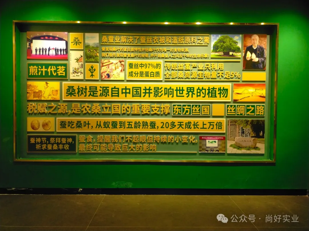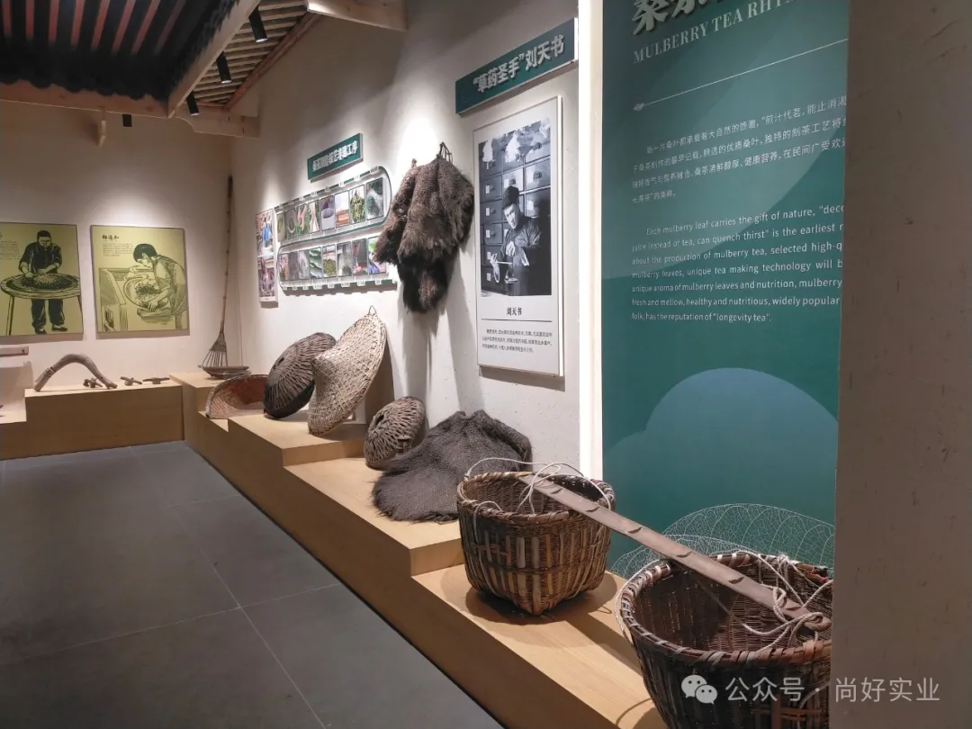 在這里,游客可以深入了解桑茶制作的每一個環(huán)節(jié),從桑葉的采摘、選葉、殺青到炒制,感受桑茶制作工藝的精湛與獨(dú)特。同時,桑茶非遺文化博物館還通過圖片、文字等多種形式,展示了尚好桑產(chǎn)業(yè)的發(fā)展歷程、桑茶的營養(yǎng)價值以及桑茶在文化交流中的重要作用,讓游客在欣賞展品的同時,領(lǐng)略到尚好桑茶非遺文化的博大精深。