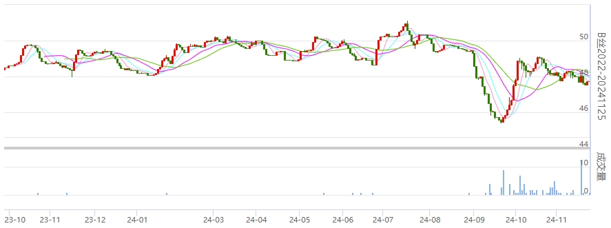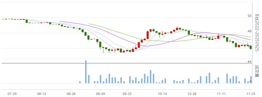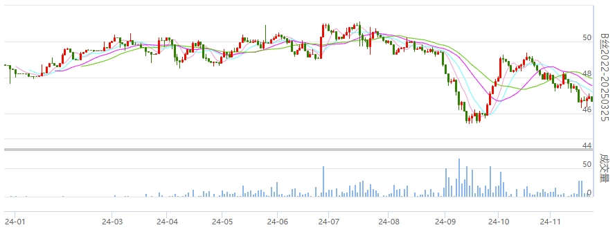 今日(2024年11月25日,周一)中國(guó)繭絲綢交易市場(chǎng)生絲電子指數(shù)下跌0.21%收于4695.77點(diǎn)。B絲2022D(商檢4A級(jí)生絲):241125合約報(bào)平收于47.73萬(wàn)元;250325合約下跌0.27萬(wàn)元報(bào)收于46.68萬(wàn)元;250925合約下跌0.36萬(wàn)元報(bào)收于45.93萬(wàn)元。