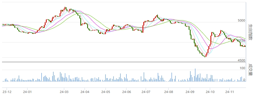 20/22D商檢4A級(jí)生絲:今日(周一)生絲盤(pán)面各遠(yuǎn)近合約價(jià)格價(jià)格繼續(xù)有所收綠,成交一般,今日生絲指數(shù)和主力合約均跌破5日均線,運(yùn)行于中短均線下方;同時(shí),RSI指標(biāo)三線逐步粘合于30下方,下跌動(dòng)能有所減弱。