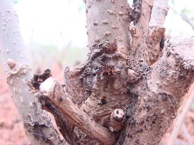 桑毛蟲在樹樁及落葉中越冬