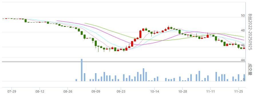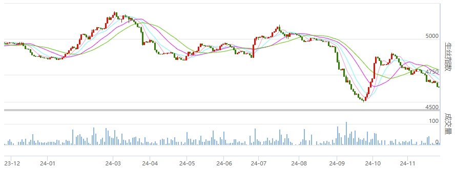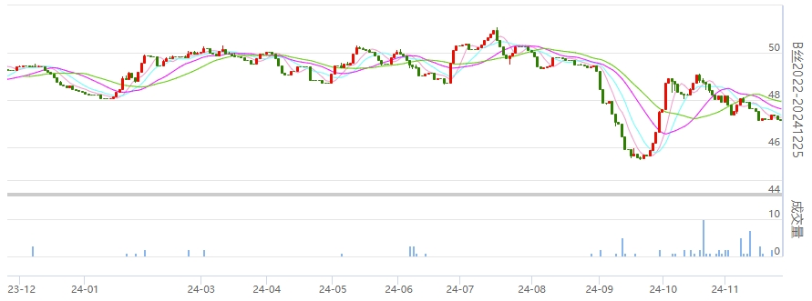 今日(2024年11月27日,周三)中國繭絲綢交易市場生絲電子指數(shù)微跌0.04%收于4662.84點(diǎn)。B絲2022D(商檢4A級生絲):241225合約下跌0.03萬元報收于47.16萬元;250325合約上漲0.18萬元報收于46.50萬元;250925合約上漲0.09萬元報收于45.87萬元。