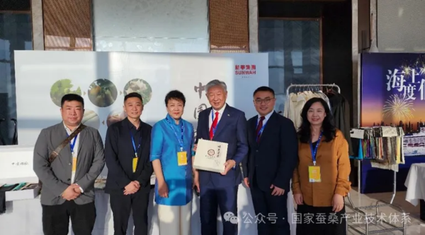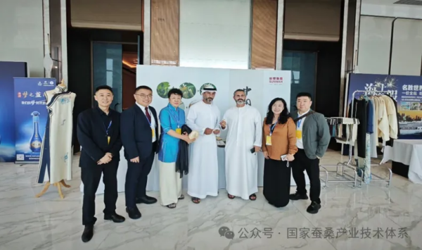 多年來,國家蠶桑產(chǎn)業(yè)技術(shù)體系強(qiáng)化體系成果的示范、推廣及應(yīng)用,通過科技賦能發(fā)展新質(zhì)生產(chǎn)力,有力推動了我國蠶桑產(chǎn)業(yè)的高質(zhì)量發(fā)展。本次參會的體系對接企業(yè),以市場為導(dǎo)向,依托體系崗位科學(xué)家團(tuán)隊(duì)研發(fā)的蛹蟲草、柞蠶絲素肽相關(guān)專利成果和技術(shù)優(yōu)勢,深入發(fā)掘遼寧特色柞蠶資源的價(jià)值,開發(fā)出蛹蟲草白茶、柞蠶絲素肽化妝品、柞蠶絲織品及高級定制服裝等系列產(chǎn)品,已快速成長為柞蠶深加工領(lǐng)域的新型企業(yè)。在本次迪拜華商周期間,其參展的柞蠶絲高級定制套裝產(chǎn)品得到了阿聯(lián)酋對外貿(mào)易部部長薩尼(中)、中國駐迪拜總領(lǐng)事歐渤芊(右)、香港中華商會會長蔡冠深(左)等國內(nèi)外嘉賓的高度認(rèn)可和極大關(guān)注。