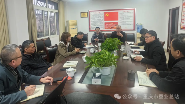 11月26日,重慶知天而作農(nóng)業(yè)科技研究院有限公司董事長易麗蓉率隊到重慶市蠶業(yè)總站座談交流。市商務委一級調(diào)研員王慶、四級調(diào)研員袁徐宏,國家蠶桑體系崗位科學家、西南大學副研究員黃先智,市繭絲綢行業(yè)協(xié)會秘書長鐘興權等專家受邀參加。市蠶業(yè)總站副站長張?zhí)?、余華獻和相關科(室)負責人等出席,支部書記蔣貴兵正高級農(nóng)藝師主持會議。
