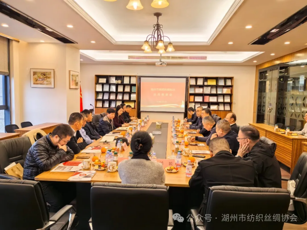 湖州市絲綢產(chǎn)業(yè)關(guān)于高檔絲綢標(biāo)志應(yīng)用與歷史經(jīng)典產(chǎn)業(yè)傳承發(fā)展部分企業(yè)座談會11月24日下午在湖州金裕絲綢科技有限公司召開,參加會議的有中國絲綢協(xié)會、浙江省絲綢協(xié)會、全國絲綢標(biāo)準(zhǔn)化委員會、湖州市經(jīng)信和信息化局、浙江理工大學(xué)湖州研究院、湖州市紡織絲綢協(xié)會和湖州市高檔絲綢標(biāo)志企業(yè)代表,與會人員共21人。會議由湖州市紡織絲綢協(xié)會凌蘭芳會長主持。
