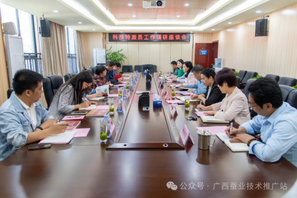 座談會上,廣西蠶業(yè)技術(shù)推廣站黃紅燕副站長向調(diào)研組介紹了單位特派員工作的開展情況;科技特派員代表匯報(bào)了服務(wù)工作中存在的問題、困難,并提出了意見和建議。胡熳華對廣西蠶業(yè)技術(shù)推廣站特派員工作開展情況和對特派員提供的科研保障和服務(wù)保障表示了肯定。她指出今年是科技特派員制度推行的第25年,25年來,廣大科技特派員走進(jìn)基層、深耕田間,在助力科技創(chuàng)新和產(chǎn)業(yè)創(chuàng)新深度融合方面取得了突出成效。新時(shí)代新征程上,要進(jìn)一步推行科技特派員制度,更加注重團(tuán)隊(duì)服務(wù)的力量,“把科研做在產(chǎn)業(yè)中、把論文寫在大地上”。