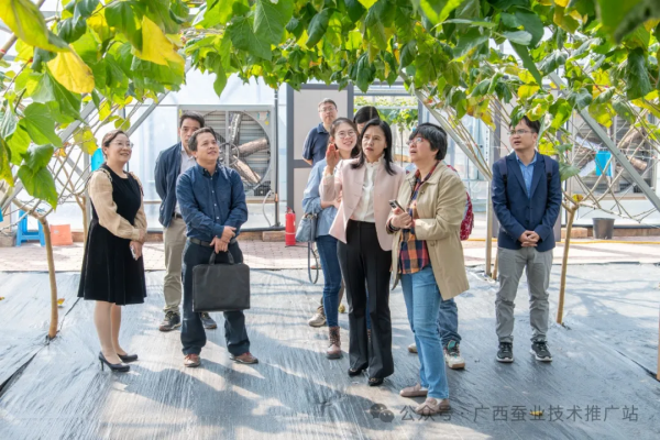 11月22日,農(nóng)業(yè)農(nóng)村部中國農(nóng)村技術(shù)開發(fā)中心科創(chuàng)處處長胡熳華一行4人到廣西蠶業(yè)技術(shù)推廣站開展科技特派員工作專題調(diào)研。自治區(qū)農(nóng)業(yè)農(nóng)村廳科學(xué)技術(shù)處王國樂副處長、廣西山區(qū)綜合技術(shù)開發(fā)中心陳新政副主任陪同調(diào)研。