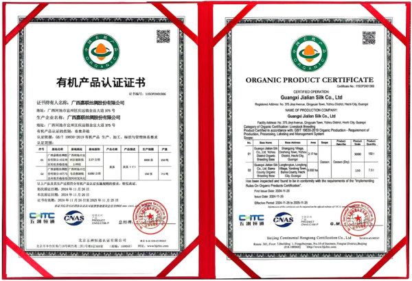 近日,廣西嘉聯(lián)絲綢股份有限公司傳來喜訊,其宜州上坪基地和巴馬基地的蠶繭產(chǎn)品正式榮獲中國有機(jī)產(chǎn)品認(rèn)證,這是嘉聯(lián)公司在綠色發(fā)展之路上的又一重要里程碑。這一認(rèn)證不僅彰顯了嘉聯(lián)公司對產(chǎn)品卓越品質(zhì)的不懈追求,也體現(xiàn)了其在推動綠色農(nóng)業(yè)與可持續(xù)發(fā)展方面的堅定決心。