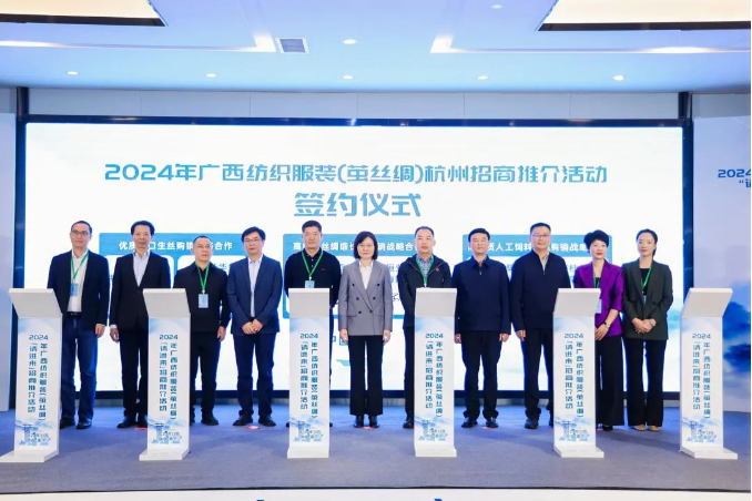 此次活動還包含產(chǎn)業(yè)推介、合作簽約、服裝走秀等環(huán)節(jié),現(xiàn)場促成簽約和意向合作簽約項目共7個,對繭絲綢產(chǎn)業(yè)協(xié)作取得實質(zhì)成效,將推動廣西繭絲綢產(chǎn)業(yè)持續(xù)向縱向延伸和橫向拓展,加快構(gòu)建繭絲綢產(chǎn)業(yè)鏈供應鏈耦合發(fā)展新格局。