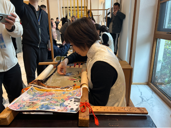 12月4日,“萬千蝶變鄉(xiāng)村行”2024中省媒體采風團從成都出發(fā),一路北上,來到四川省綿陽市涪城區(qū)。隨著最后一季的晚秋蠶鮮繭的售出,涪城區(qū)蠶桑現代農業(yè)園終于閑了下來。不遠處的繡房內,繡娘們正用指尖挑動著由園區(qū)內蠶繭制成的絲線,在織物上勾勒著客戶們預定的圖案。