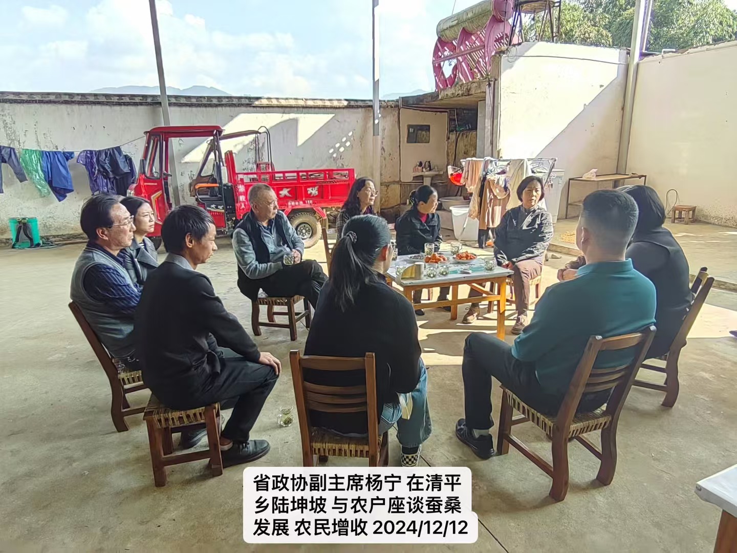 2024年12月10一11日,云南省政協(xié)副主席楊寧,帶領(lǐng)省級(jí)有關(guān)部門,在州政協(xié)主席黃麗云,縣政協(xié)主席許興航,德宏正信公司董事長(zhǎng)鄭山洪等領(lǐng)導(dǎo)的陪同下,深入鄉(xiāng)鎮(zhèn),走村入戶,座談研究,深度調(diào)研隴川蠶桑產(chǎn)業(yè),聯(lián)農(nóng)帶農(nóng),快速發(fā)展,助農(nóng)增收,致富奔康取得的新成效,新模式,新格局,新路徑。