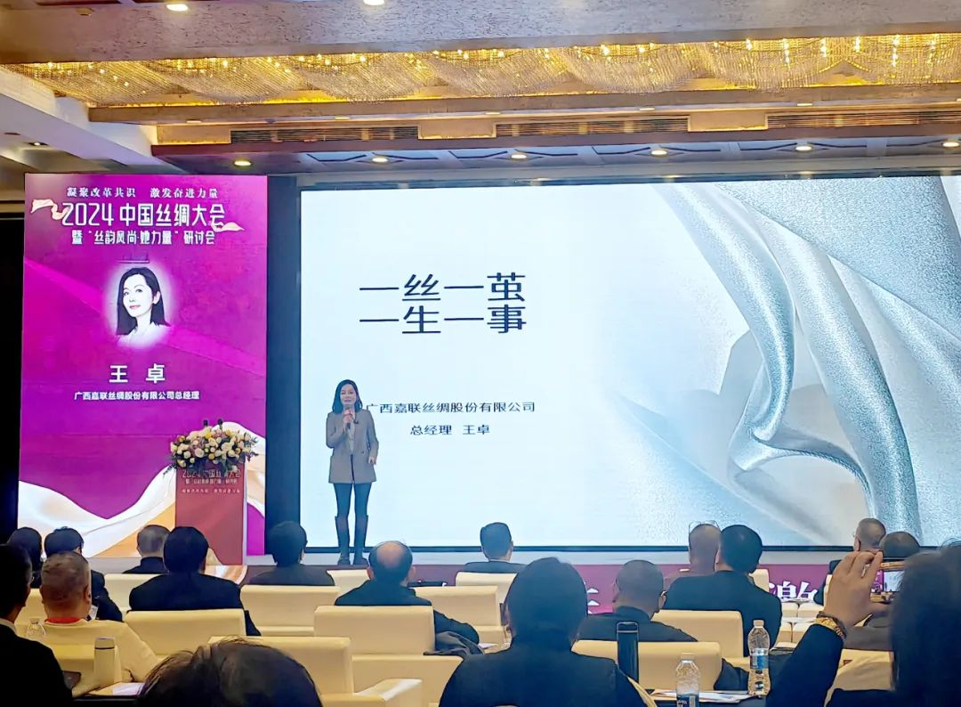 廣西嘉聯(lián)絲綢股份有限公司總經(jīng)理王卓發(fā)表題為“一絲一繭 一生一事”的主題演講