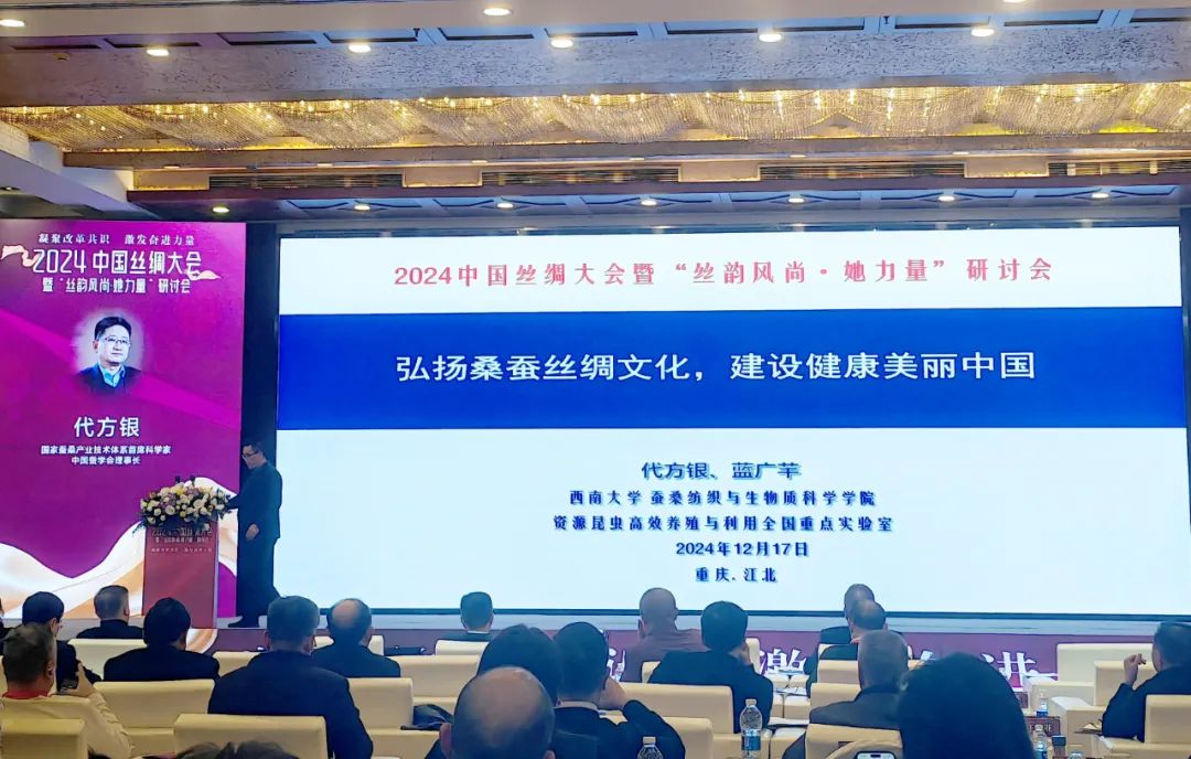 受中國(guó)蠶學(xué)會(huì)理事長(zhǎng)代方銀委托,藍(lán)廣芊副院長(zhǎng)發(fā)表題為“弘揚(yáng)桑蠶絲綢文化,建設(shè)健康美麗中國(guó)”的主題演講