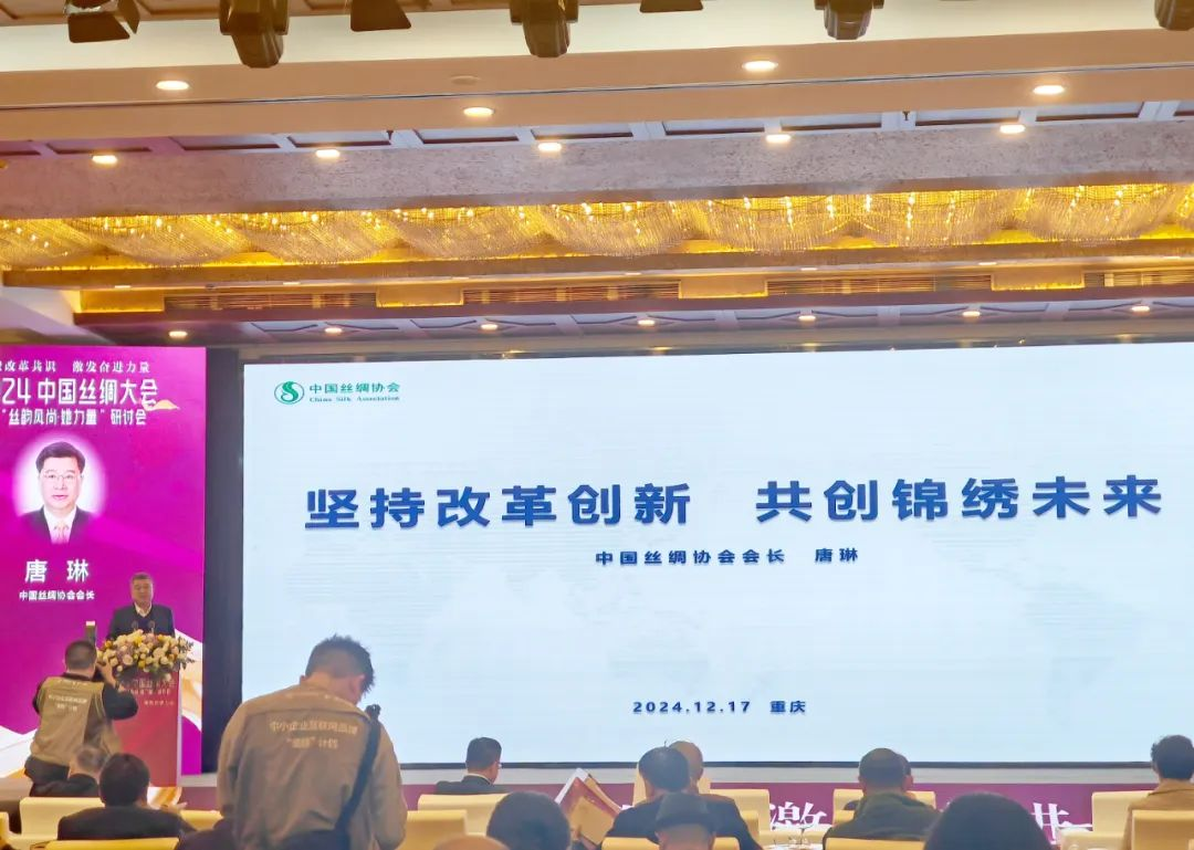 唐會(huì)長(zhǎng)圍繞當(dāng)前繭絲綢行業(yè)經(jīng)濟(jì)運(yùn)行情況、2024年協(xié)會(huì)主要工作回顧及2025年工作計(jì)劃等三方面作“堅(jiān)持改革創(chuàng)新 共創(chuàng)錦繡未來”的主題報(bào)告。
