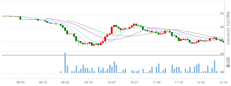 今日(2024年12月16日,周一)中國(guó)繭絲綢交易市場(chǎng)生絲電子指數(shù)下跌0.30%收于4680.75點(diǎn)。B絲2022D(商檢4A級(jí)生絲):241225合約下跌0.09萬(wàn)元報(bào)收于47.61萬(wàn)元;250325合約下跌0.12萬(wàn)元報(bào)收于46.77萬(wàn)元;250925合約下跌0.15萬(wàn)元報(bào)收于45.99萬(wàn)元。