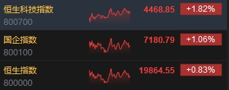 12月18日消息,今日港股三大指數(shù)集體收漲,截至收盤(pán),恒生指數(shù)(19864.551, 0.00, 0.00%)漲0.83%,報(bào)19864.55點(diǎn),恒生科技指數(shù)(4468.85, 0.00, 0.00%)漲1.82%,國(guó)企指數(shù)漲1.06%。盤(pán)面上,科網(wǎng)股普遍上漲,小米漲近3%,百度、京東漲超1%,美團(tuán)、騰訊、阿里巴巴漲近1%;央企上市公司市值管理再次被提,中字頭股表現(xiàn)搶眼,中國(guó)交通建設(shè)(5.36, 0.00, 0.00%)漲超4%;半導(dǎo)體概念股漲幅居前,中芯國(guó)際(25.95, 0.00, 0.00%)漲近3%;汽車(chē)股集體走強(qiáng),零跑、華晨中國(guó)漲超6%。