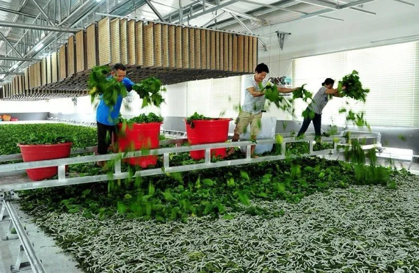 工作人員將收購的蠶繭裝盤上架,準(zhǔn)備進(jìn)爐烘烤