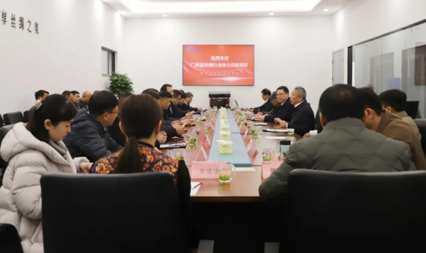 在隨后舉行的座談會上,范茂林董事長對廣西繭絲綢行業(yè)協(xié)會領(lǐng)導(dǎo)及企業(yè)家們的到來表示了熱烈歡迎,并詳細(xì)介紹了公司的創(chuàng)立初衷、發(fā)展歷程、科技創(chuàng)新、應(yīng)用領(lǐng)域及未來規(guī)劃。雙方圍繞產(chǎn)業(yè)發(fā)展、產(chǎn)業(yè)鏈延伸及合作模式等方面進(jìn)行了深入的交流和探討。