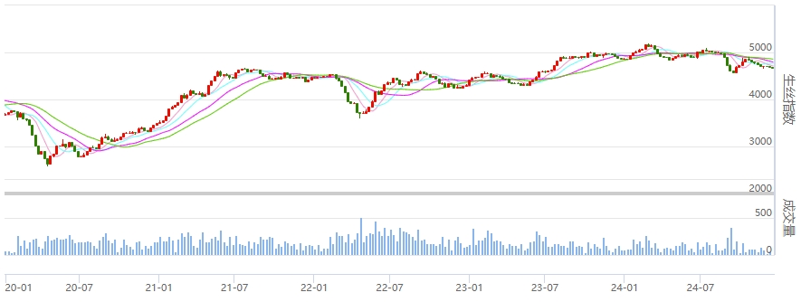 今日(周五)盤面各遠(yuǎn)近生絲合約小幅波動價格略收綠。
