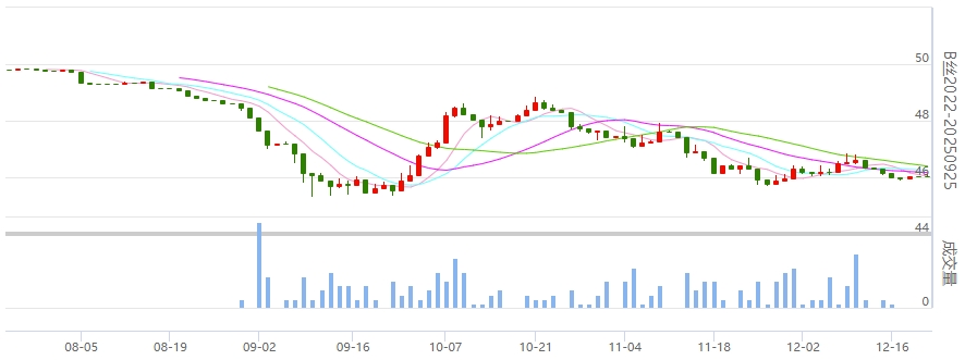 今日(2024年12月20日,周五)中國繭絲綢交易市場生絲電子指數(shù)微跌0.07%收于4669.47點(diǎn),本周生絲指數(shù)下跌0.54%。B絲2022D(商檢4A級生絲):241225合約下跌0.06萬元報收于47.43萬元;250325合約下跌0.03萬元報收于46.65萬元;250925合約報平收于46.05萬元。