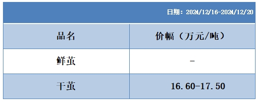 本周高品位生絲協(xié)作單位成交價格區(qū)間