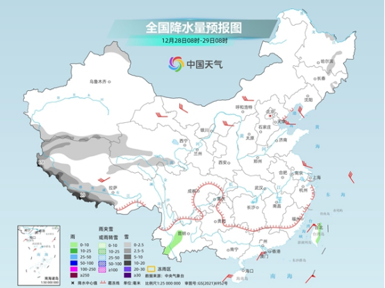 中央氣象臺(tái)預(yù)計(jì),今天,西藏西部、新疆西南部、川西高原東部、貴州西部、內(nèi)蒙古東北部等地部分地區(qū)有小雪或雨夾雪,其中,西藏西部部分地區(qū)有中到大雪,局地暴雪。湖北西南部、四川盆地南部、重慶中部、貴州東北部和西部、云南東部、廣西西北部、海南島中東部、臺(tái)灣島等地部分地區(qū)有小雨。