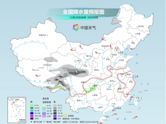 后天,內(nèi)蒙古東北部、西藏北部和東部、青海南部和西部、甘肅南部、川西高原北部等地部分地區(qū)有小雪或雨夾雪,其中,西藏東部、青海南部、甘肅南部、川西高原北部等地部分地區(qū)有中到大雪,西藏東部等地局地暴雪。西藏東南部、四川盆地東南部、重慶中西部、貴州西北部、臺(tái)灣島東部等地部分地區(qū)有小雨。