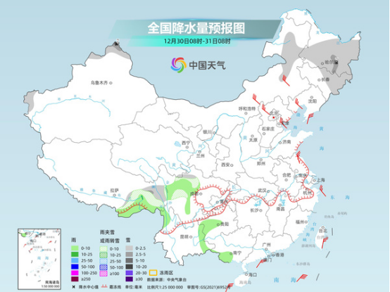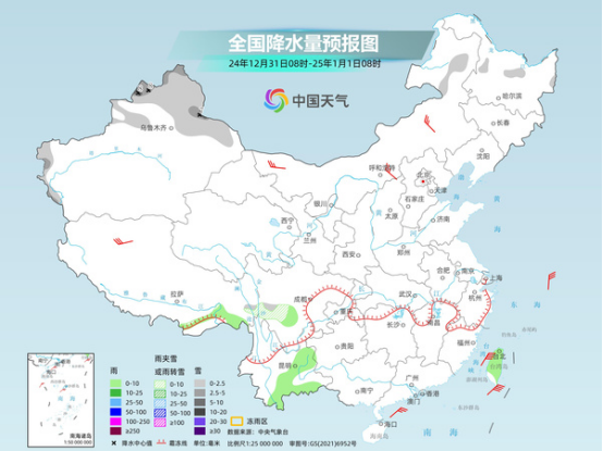2024年最后兩天(12月30日至31日),我國大部地區(qū)仍將延續(xù)雨雪稀少的天氣格局,但在新疆以及東北等地還會(huì)不時(shí)有降雪出現(xiàn)。2025年元旦開始,西南地區(qū)陰雨雪天氣將有所增多。與此同時(shí),受弱冷空氣影響,北方部分地區(qū)將有4至6℃降溫,提醒公眾做好防寒保暖工作。