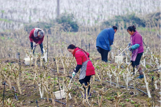 12月21日,村民在太極鎮(zhèn)李子村蠶桑基地給桑樹刷防蟲石灰水進行冬管