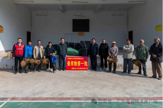 調(diào)研過(guò)程中,調(diào)研組向松山村捐贈(zèng)了枝剪、桑苗、蠶藥、方格簇等生產(chǎn)物資。