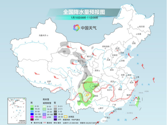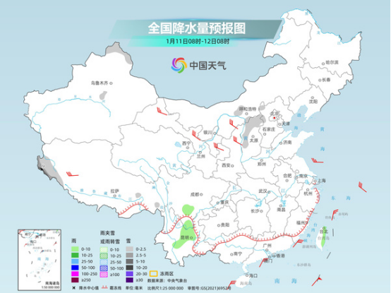 具體來看,今天,新疆東部、甘肅、青海東北部、內(nèi)蒙古西部、川西高原東部以及貴州西部、云南東北部等地部分地區(qū)有小到中雪或雨夾雪。貴州西部等地局地有凍雨。四川盆地、重慶中西部、貴州中西部、云南中東部、廣西西北部、臺灣島中東部等地部分地區(qū)有小雨。