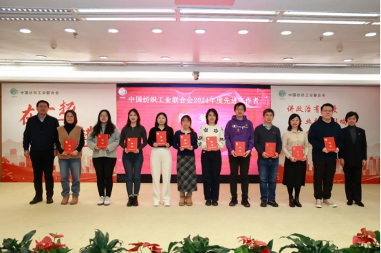 最后,大會(huì)舉行了隆重的表彰儀式。中國(guó)紡聯(lián)副會(huì)長(zhǎng)徐迎新宣讀《關(guān)于表彰中國(guó)紡織工業(yè)聯(lián)合會(huì)2024年度先進(jìn)單位優(yōu)秀集體和先進(jìn)工作者的決定》。中國(guó)紡織工業(yè)聯(lián)合會(huì)科技發(fā)展部等7家單位獲先進(jìn)單位稱(chēng)號(hào),中國(guó)棉紡織行業(yè)協(xié)會(huì)市場(chǎng)發(fā)展部等14個(gè)部門(mén)獲優(yōu)秀集體稱(chēng)號(hào),周曉松等59名同志獲先進(jìn)工作者稱(chēng)號(hào)。