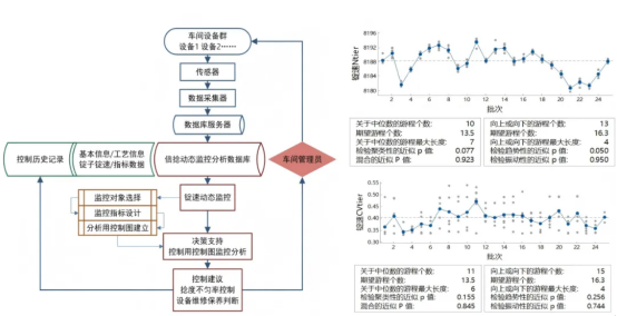 項目研發(fā)了從原料到成品檢驗全過程的絲綢面料織造智能生產系統(tǒng)和智能管理系統(tǒng)。對絲織每一道工序進行了數(shù)字化研究,以倍捻為例,確定了基于錠速的倍捻動態(tài)監(jiān)控方案,并將統(tǒng)計過程控制中的控制圖技術引入倍捻工序監(jiān)控中,設計錠速Ntier及錠速CVtier監(jiān)控指標,確定了采用I-MR-R三向控制圖對兩個指標進行監(jiān)控,形成了基于控制圖技術的倍捻動態(tài)監(jiān)控質量控制及設備狀態(tài)監(jiān)控方法。