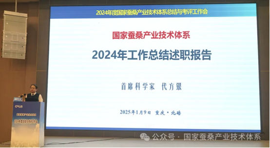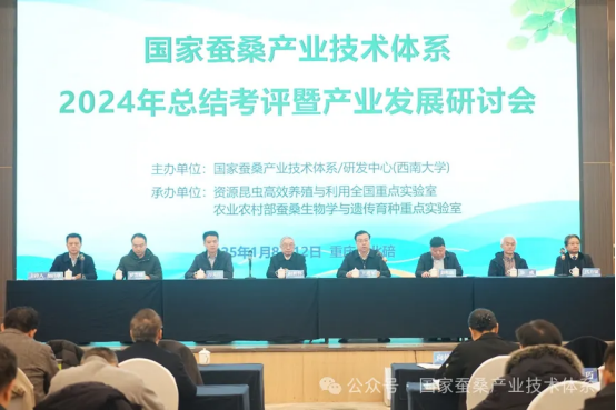 根據(jù)農(nóng)業(yè)農(nóng)村部科學(xué)技術(shù)司通知要求,國家蠶桑產(chǎn)業(yè)技術(shù)體系(以下簡稱國家蠶桑體系)于2025年1月8–12日在重慶市北碚區(qū)召開了2024年總結(jié)考評暨產(chǎn)業(yè)發(fā)展研討會。出席會議的有農(nóng)業(yè)農(nóng)村部全國農(nóng)業(yè)技術(shù)推廣服務(wù)中心園藝作物技術(shù)處萬克江處長,重慶市商務(wù)委員會黨組成員彭和良副主任,重慶市農(nóng)業(yè)技術(shù)推廣總站羅雪峰副站長,國家蠶桑體系首任首席科學(xué)家、西南大學(xué)向仲懷院士,西南大學(xué)校長王進軍教授,國家蠶桑體系前首席科學(xué)家、西南大學(xué)魯成教授,廣西、四川、浙江、廣東、安徽、山東、重慶等7個?。ㄊ?、區(qū))的行政管理、推廣單位負責(zé)人和地方創(chuàng)新團隊首席專家,行業(yè)部分資深專家和體系“退休”專家代表,國家蠶桑體系首席科學(xué)家、全體在聘專家及部分團隊成員,共計120余人。