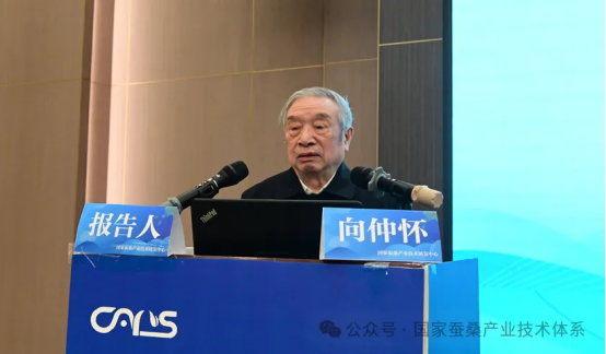 最后,由向仲懷院士作指導(dǎo)發(fā)言。向仲懷院士首先向大家表達了問候,總體上肯定了體系為蠶桑產(chǎn)業(yè)發(fā)展作出的努力和取得的成績。隨即,他圍繞“推動蠶桑產(chǎn)業(yè)重回主賽道”,展開了系統(tǒng)性闡述。向院士強調(diào)科技突破對于產(chǎn)業(yè)發(fā)展的重要性,回顧了蠶、桑及重大病原基因組研究在關(guān)鍵時期對于提升科技水平、人才隊伍和行業(yè)影響所發(fā)揮的作用,強調(diào)了桑樹基因組研究的科學(xué)發(fā)現(xiàn)對于拓展產(chǎn)業(yè)方向的啟示和影響。向院士強調(diào),如何通過科技創(chuàng)新找到產(chǎn)業(yè)發(fā)展的新方向,始終是最要緊的任務(wù)。他指出,發(fā)展桑產(chǎn)業(yè),推動生態(tài)治理和多元化發(fā)展意義重大,應(yīng)耐心地在科技隊伍和體系中實踐探索;發(fā)展生態(tài)型產(chǎn)業(yè),以服務(wù)大健康為方向,融入國家戰(zhàn)略,實現(xiàn)多元化和高效益,提升產(chǎn)業(yè)競爭力。向院士指出,21世紀(jì)以來,蠶桑產(chǎn)業(yè)面臨從傳統(tǒng)模式向現(xiàn)代產(chǎn)業(yè)體系的轉(zhuǎn)型,這一轉(zhuǎn)型要求科技發(fā)展與產(chǎn)業(yè)需求相匹配,切實解決科技跟上需求的問題。產(chǎn)業(yè)的轉(zhuǎn)型需要高層次科學(xué)家和產(chǎn)業(yè)專家的共同努力,通過科技創(chuàng)新來發(fā)現(xiàn)蠶桑產(chǎn)業(yè)的新功能、開發(fā)新產(chǎn)品,進而開拓新市場。此過程不僅涉及到種植業(yè)的轉(zhuǎn)型升級,也強調(diào)了養(yǎng)殖業(yè)現(xiàn)代化生產(chǎn)的重要性,并要在產(chǎn)業(yè)中發(fā)現(xiàn)和利用新的價值。向院士指出,轉(zhuǎn)型成功的關(guān)鍵在于識別和培育新的市場,同時利用現(xiàn)代科技解決傳統(tǒng)產(chǎn)業(yè)中的難題。例如,通過開發(fā)蠶絲新材料等,以促進蠶桑產(chǎn)業(yè)的全面發(fā)展和市場拓展。最后,向院士進一步強調(diào)了現(xiàn)代蠶桑產(chǎn)業(yè)的發(fā)展路徑問題。他指出,“立桑為業(yè)、多元發(fā)展”,就是立于生態(tài)、立足農(nóng)業(yè)、因地制宜、多元模式、現(xiàn)代化發(fā)展,通過科技創(chuàng)新和學(xué)科交叉合作來推動產(chǎn)業(yè)進步,不斷蹚出新的路子。