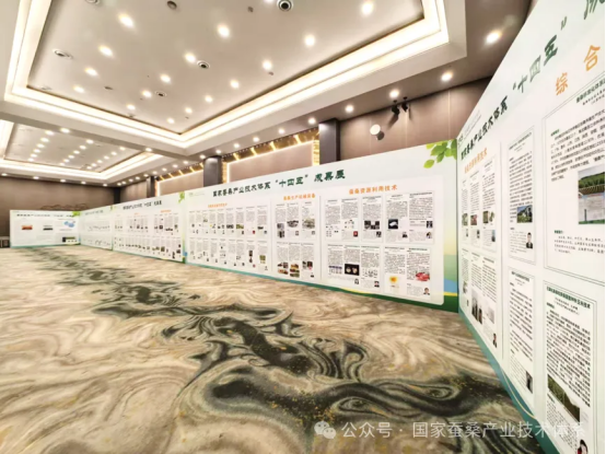會議期間,設(shè)有國家蠶桑產(chǎn)業(yè)技術(shù)體系“十四五”成果展?!笆奈濉币詠?,國家蠶桑體系針對蠶桑產(chǎn)業(yè)發(fā)展中的關(guān)鍵共性技術(shù)瓶頸,重點圍繞“蠶?,F(xiàn)代高效綠色種養(yǎng)生產(chǎn)關(guān)鍵技術(shù)研發(fā)與應(yīng)用”和“桑蠶繭絲資源多元高效利用關(guān)鍵技術(shù)研發(fā)與應(yīng)用”兩大主線任務(wù)開展攻關(guān),構(gòu)建產(chǎn)業(yè)基礎(chǔ)數(shù)據(jù)平臺,實施“百項技術(shù)列裝全產(chǎn)業(yè)鏈工程”,取得了十分突出的成效。本次共展示成果107項,分為9個方面,其中數(shù)據(jù)平臺構(gòu)建及種質(zhì)資源6項、蠶育種技術(shù)與新品種25項、桑樹新品種7項、蠶養(yǎng)殖技術(shù)13項、桑樹栽培管理技術(shù)11項、蠶桑病蟲害防控技術(shù)18項、蠶桑生產(chǎn)機械裝備6項、蠶桑資源利用技術(shù)16項、綜合技術(shù)5項。