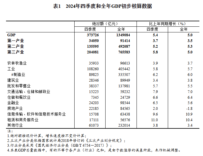 2024年四季度和全年國內(nèi)生產(chǎn)總值初步核算結(jié)果
