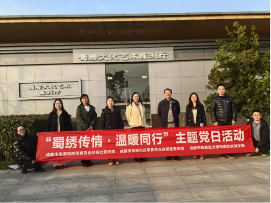 為深入學習貫徹習近平總書記對四川工作系列重要指示精神、省委十二屆六次全會精神、市委市政府有關決策部署,按照委機關關于扎實開展“暖冬行·送溫暖”活動相關要求,日前,成都市發(fā)展改革委經(jīng)貿處黨支部、政研室黨支部、郫都區(qū)安靖街道機關黨支部聯(lián)合開展以“蜀繡傳情·溫暖同行”為主題的黨建聯(lián)創(chuàng)黨日活動。