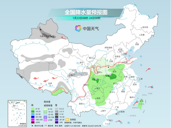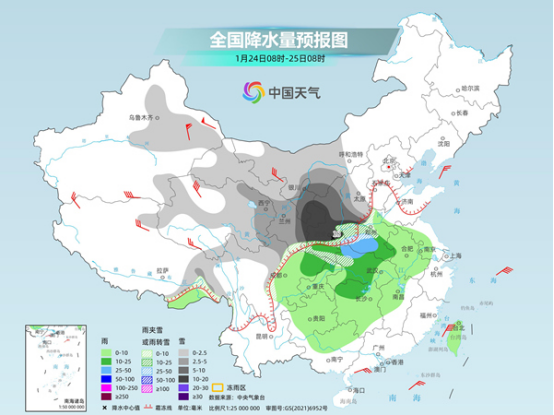 中國天氣網(wǎng)提醒,這輪雨雪過程中,24日至25日,西北地區(qū)東部、華北、黃淮、江漢等地將出現(xiàn)大范圍雨雪天氣,陜西、山西、河南或成為強(qiáng)降雪中心,26日至27日,隨著寒潮繼續(xù)東移南下,東北地區(qū)也將迎來強(qiáng)降雪。眼下2025年春運(yùn)正如火如荼開展中,公眾返鄉(xiāng)途中需注意防范雨雪冰凍天氣對(duì)交通出行的不利影響。