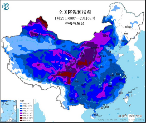 今天(1月23日)至27日,今年首場寒潮將攜大范圍雨雪來襲,西北地區(qū)東部、華北、東北等地有較強降雪,部分地區(qū)將現(xiàn)大到暴雪。同時,寒潮還會給全國大部帶來明顯降溫,多地氣溫將創(chuàng)入冬后新低,正值春運高峰期,公眾請注意防寒保暖,留意交通安全。
