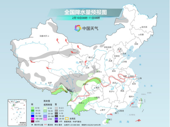 今天,我國大部地區(qū)降水仍然稀少。明天起,我國降水范圍擴大,南方大部地區(qū)有小雨,局部大雨,東北部分地區(qū)有較強降雪,同時西藏、四川等地的雨雪天氣還將持續(xù)。
