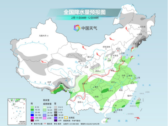 明天,內(nèi)蒙古東北部、黑龍江東北部、吉林東部、遼寧東部、新疆伊犁河谷和西南部山區(qū)、西藏北部和東部、青海中南部、甘肅南部、西南地區(qū)北部等地部分地區(qū)有小到中雪或雨夾雪,其中,西藏東部等地局地有大雪。西藏東南部、江淮南部、江漢東部、江南、西南地區(qū)東部、華南大部、臺(tái)灣島等地部分地區(qū)有小到中雨,其中,福建東南部、廣東東部沿海、臺(tái)灣島等地部分地區(qū)有大雨。