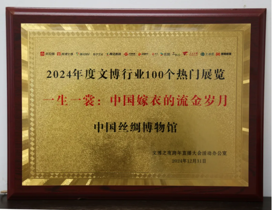 近日,由央視頻、微博文博、騰訊SSV數(shù)字文化實(shí)驗(yàn)室、騰訊新聞、中國聯(lián)通、愛奇藝、優(yōu)酷、雅昌藝術(shù)網(wǎng)、人民文博、文博圈、博展聯(lián)盟聯(lián)合發(fā)起的“2024年度文博行業(yè)100個(gè)年度熱門展覽”評選結(jié)果公布,中國絲綢博物館“一生一裳:中國嫁衣的流金歲月”展覽成功入選。