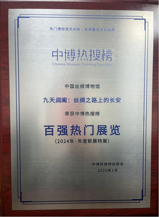 其中,中國絲綢博物館榮獲中博熱搜榜“百強(qiáng)熱門博物館”,“九天閶闔:絲綢之路上的長安”特展榮獲“百強(qiáng)熱門展覽(2024年·年度新展特展)”,天蠶靈機(jī):中國蠶桑絲織技藝非物質(zhì)文化遺產(chǎn)展榮獲百強(qiáng)熱門展覽(2024年·年度基本陳列)。
