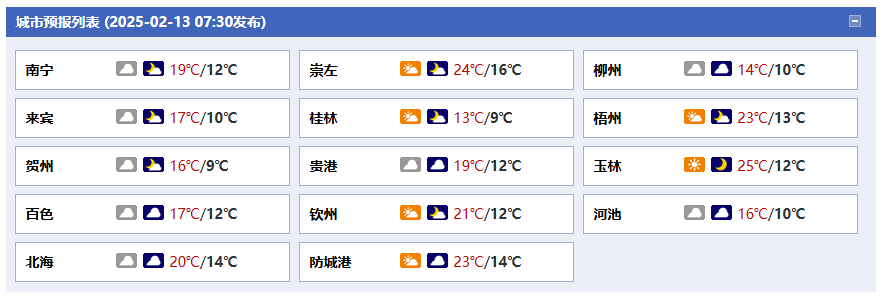 廣西氣象臺(tái)13日05時(shí)發(fā)布預(yù)報(bào):